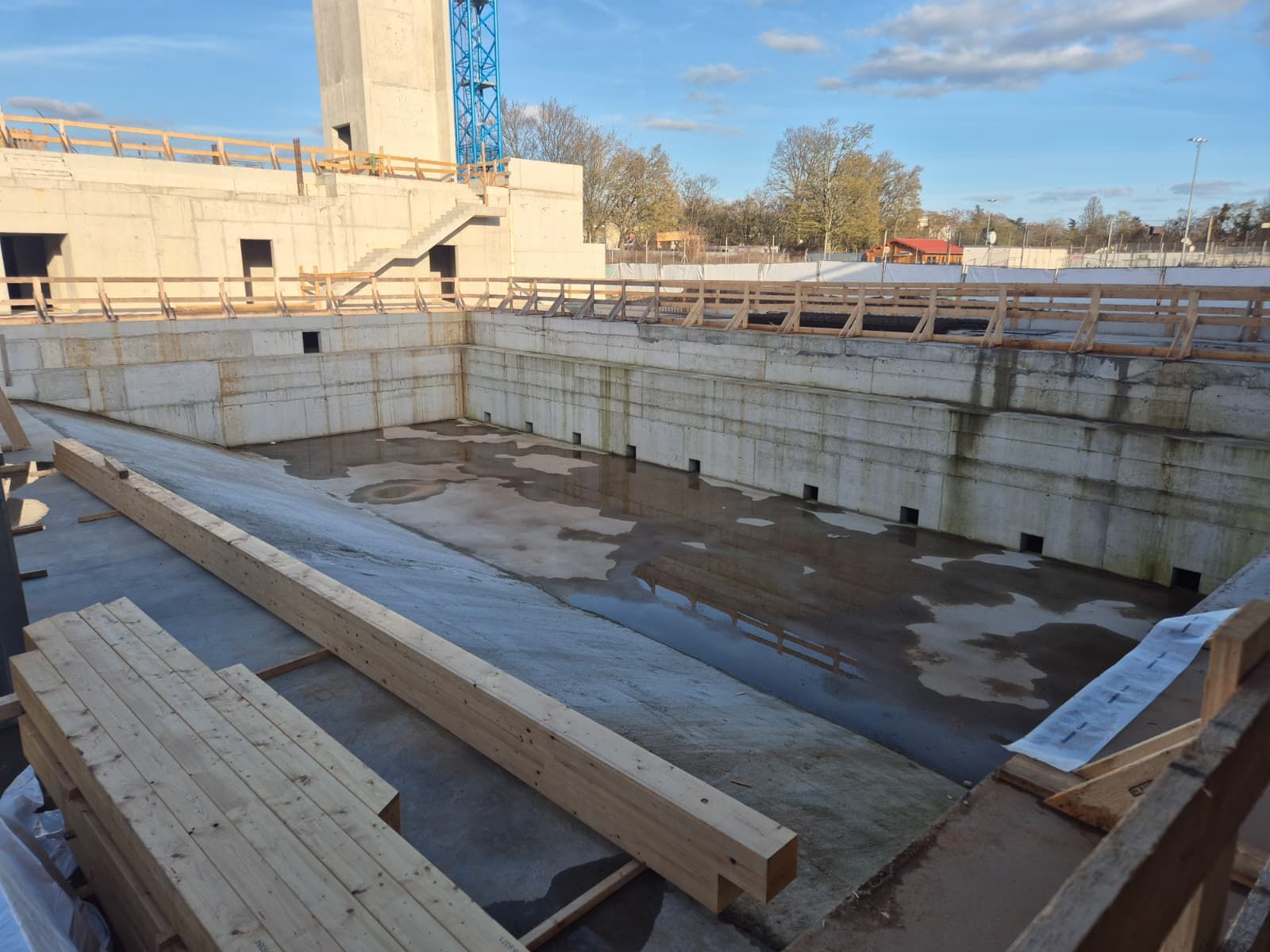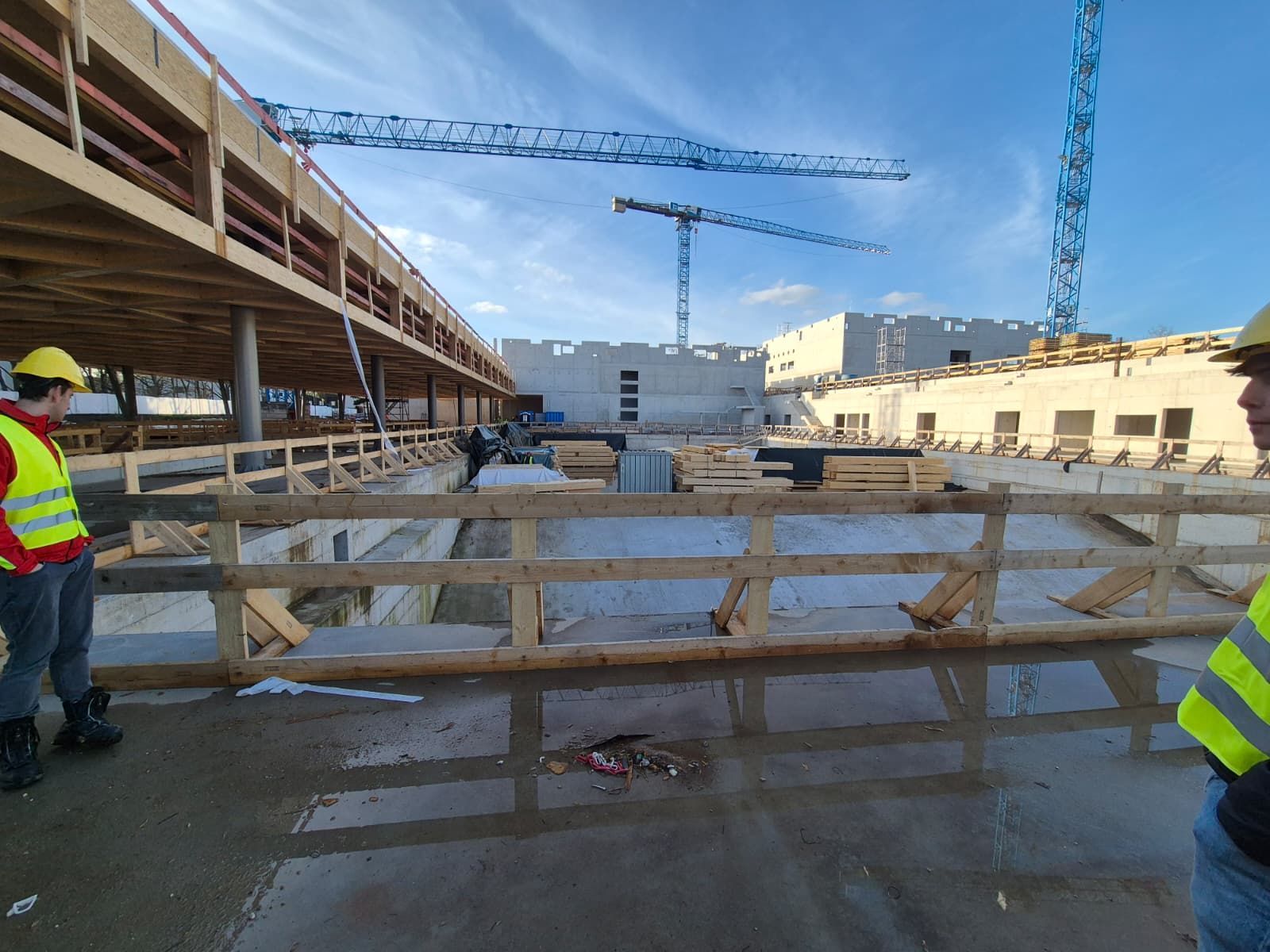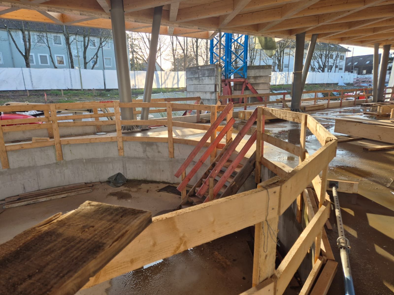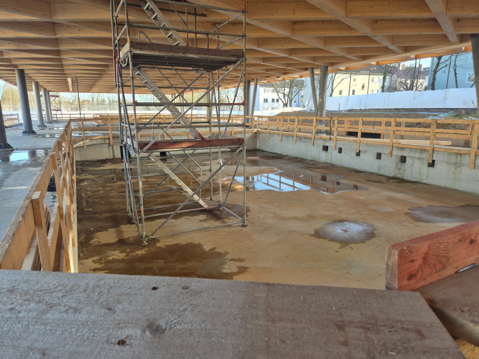 Der Vorstand des SCW hatte Mattiaqua bereits im Oktober um eine Besichtigungsmöglichkeit gebeten und jetzt kurz vor dem Abschluss des Rohbaus ergab sich die Gelegenheit für unseren Präsidenten Christoph Eichler, der seit den ersten Bürgerbeteiligungsgesprächen, damals noch als Vertreter des Tauchclub Pulpo Wiesbaden, an den Gesprächen beteiligt war.