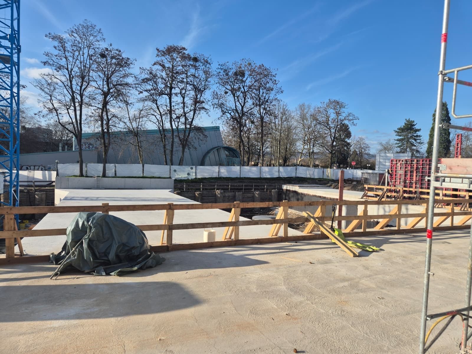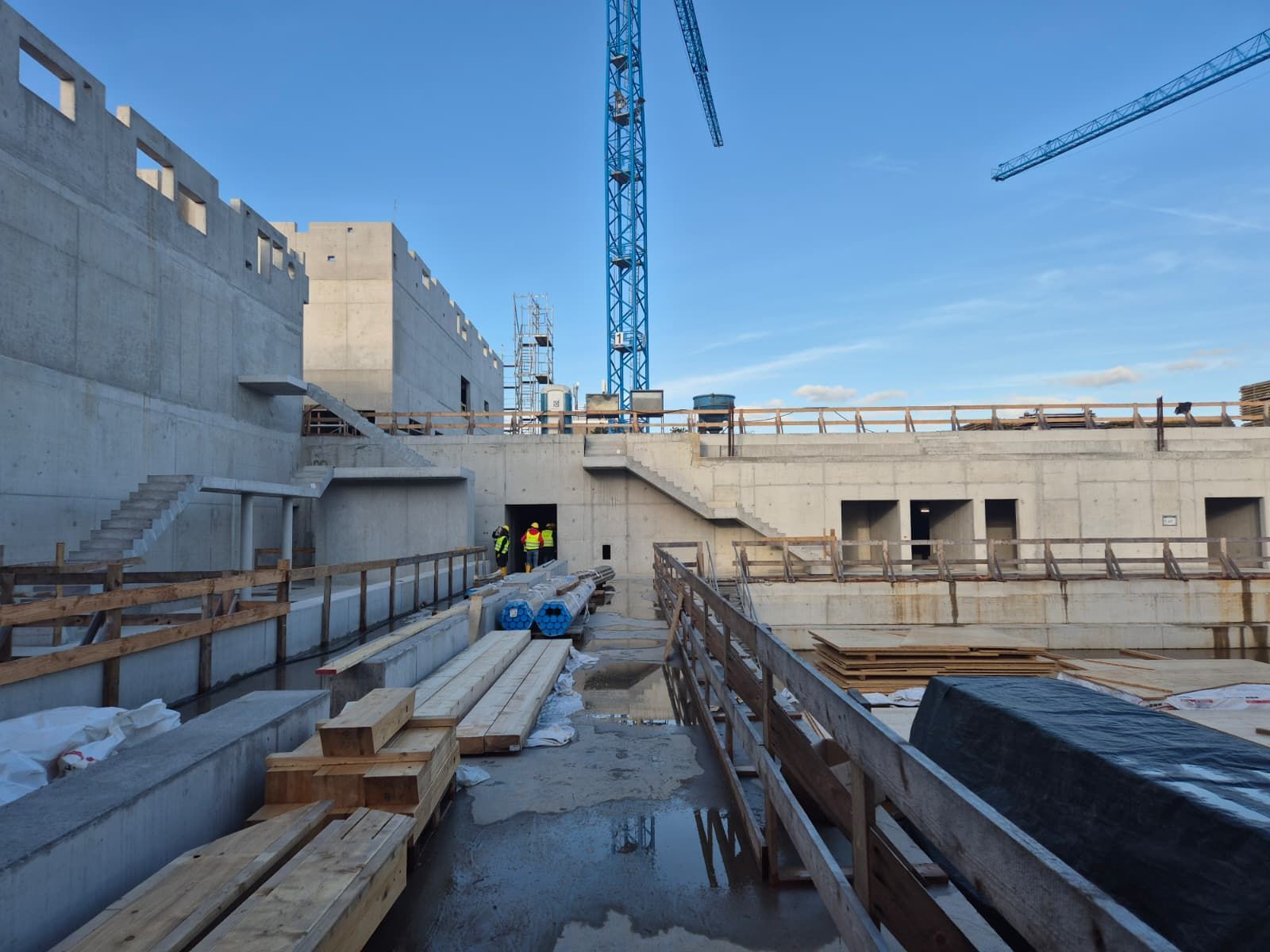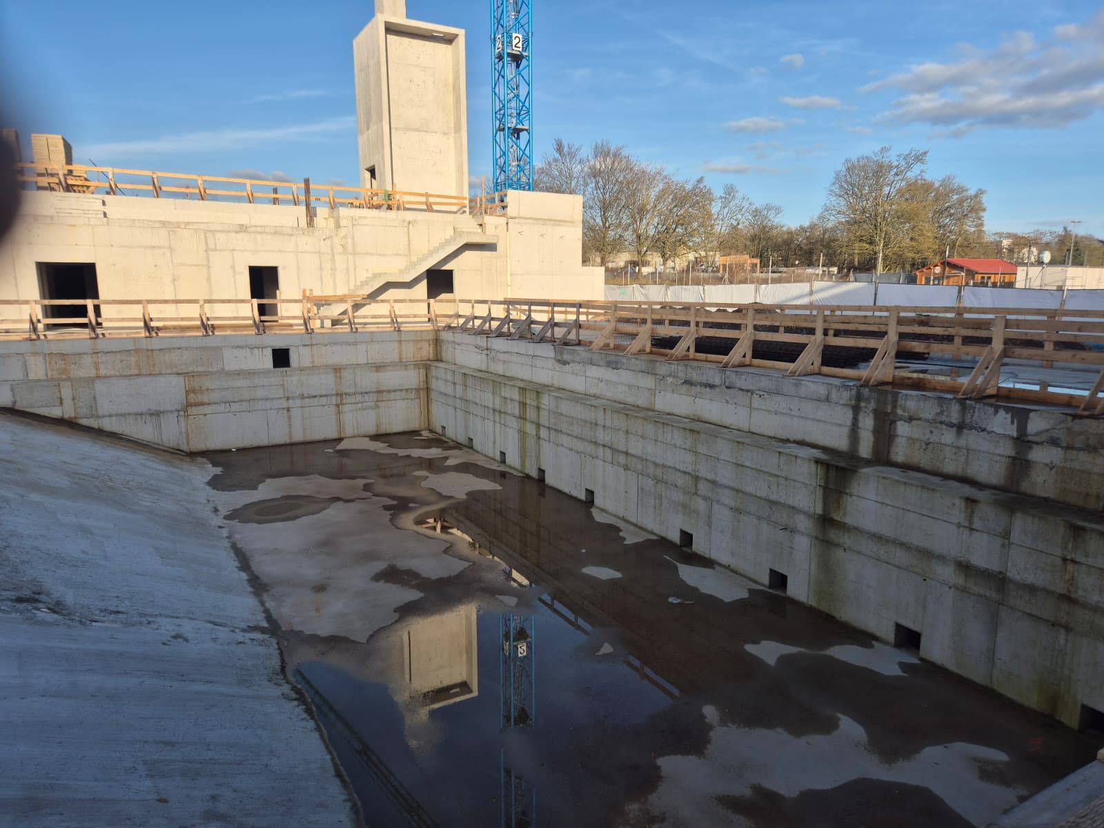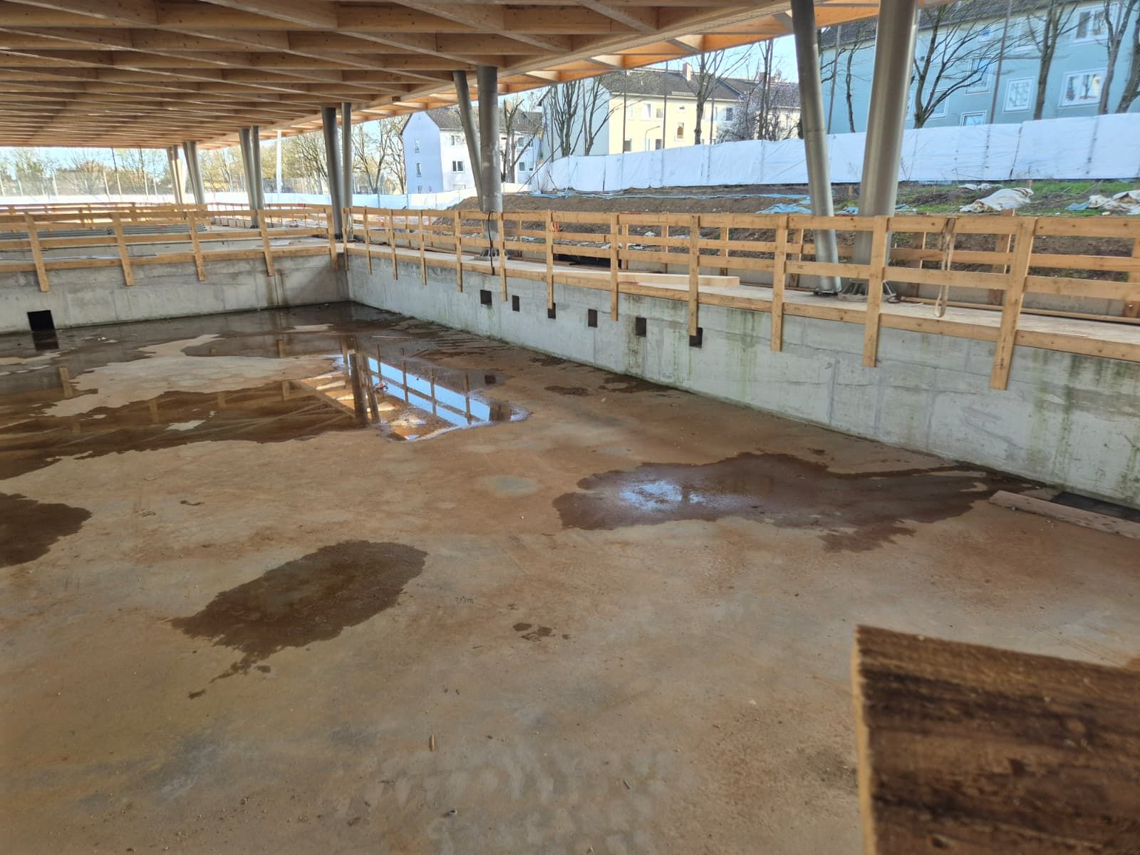 Der Vorstand des SCW hatte Mattiaqua bereits im Oktober um eine Besichtigungsmöglichkeit gebeten und jetzt kurz vor dem Abschluss des Rohbaus ergab sich die Gelegenheit für unseren Präsidenten Christoph Eichler, der seit den ersten Bürgerbeteiligungsgesprächen, damals noch als Vertreter des Tauchclub Pulpo Wiesbaden, an den Gesprächen beteiligt war.