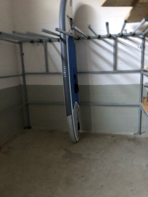 Bitte achtet darauf, dass nur die Bretter und die Paddel dort gelagert werden können und die Fläche nicht für andere Utensilien genutzt werden kann.