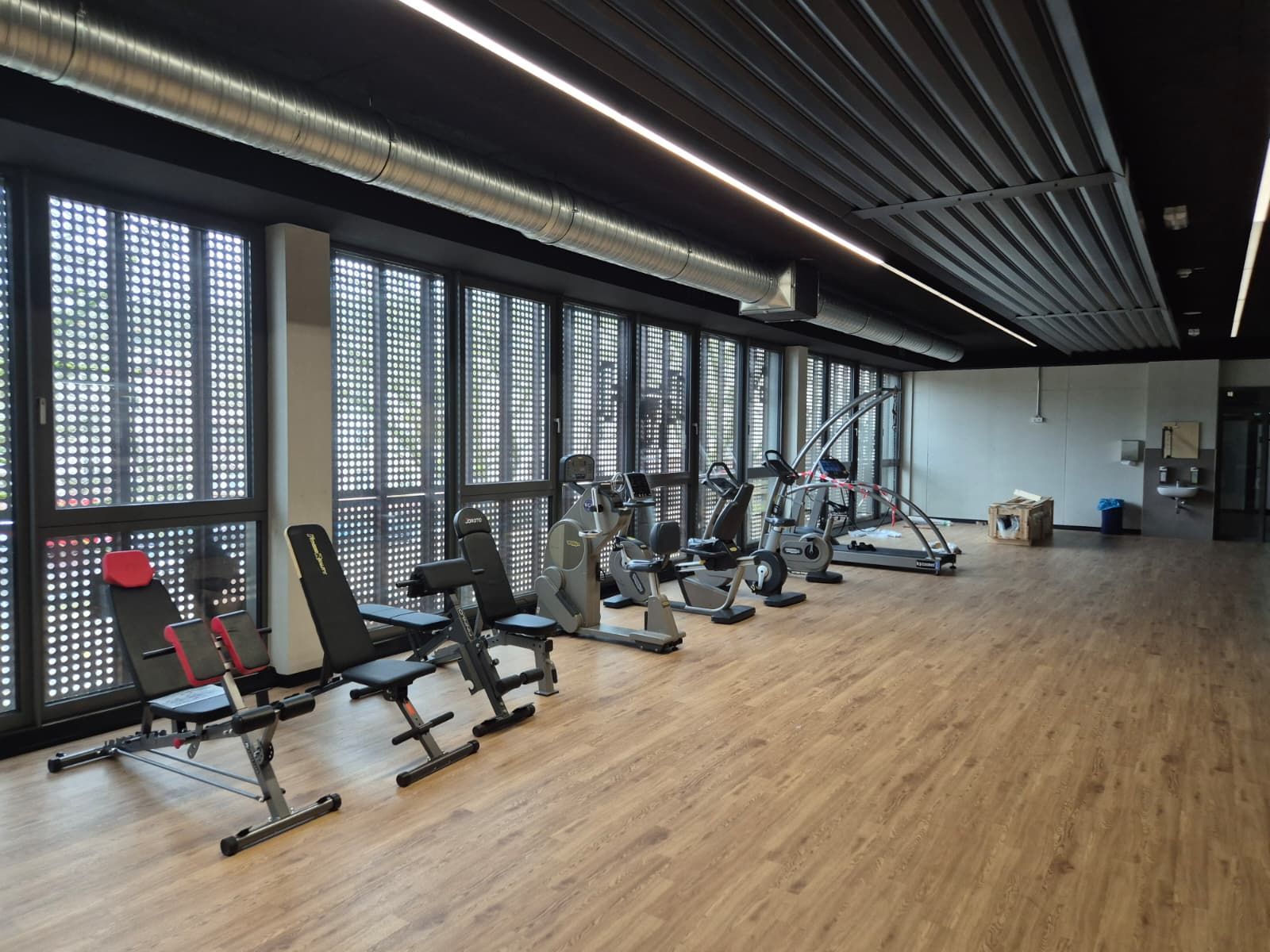 Auf einer Fläche von 140 m² hat die Stadt Wiesbaden im Gebäude der neuen Dreifelderhalle der GHS einen Kraftraum für die Talentförderungen und Vereine erstellt.