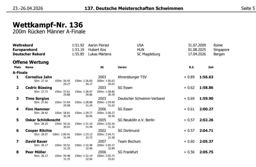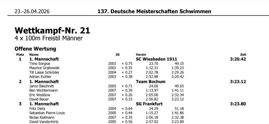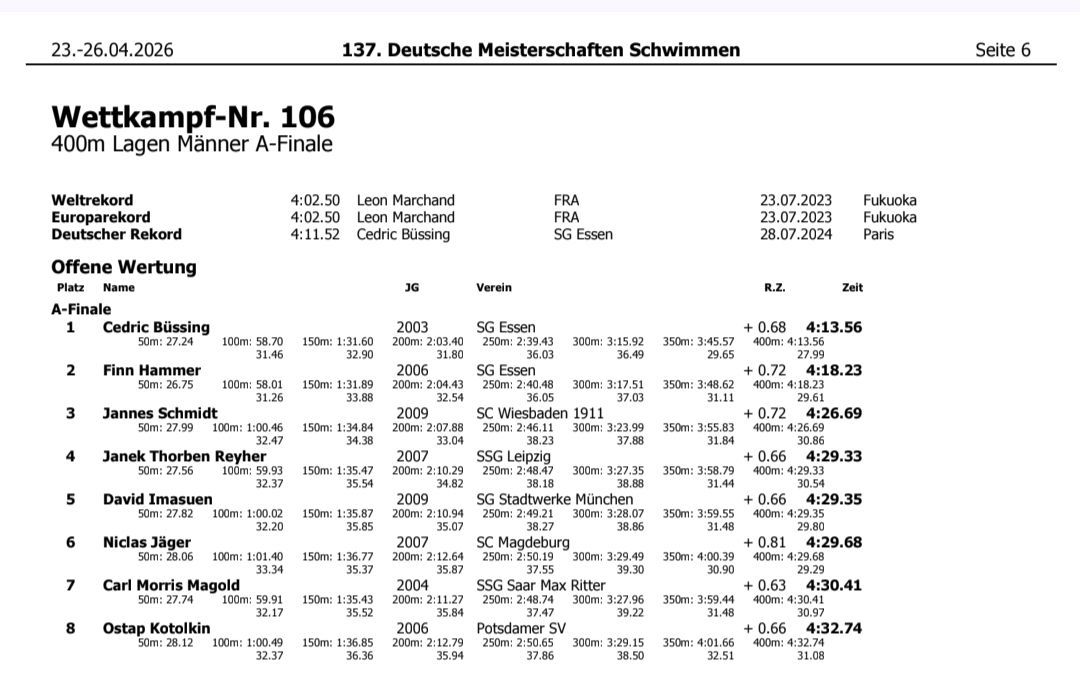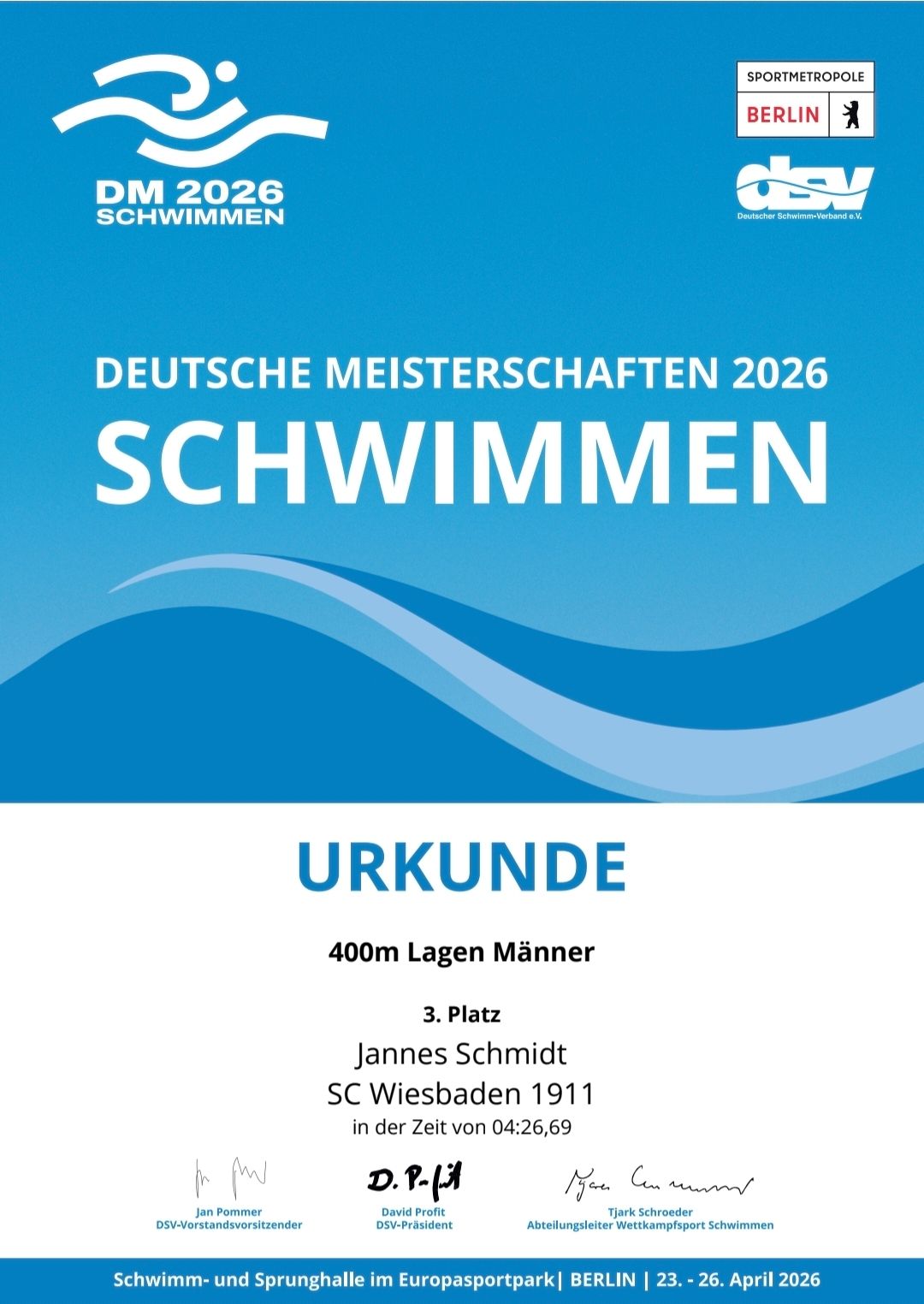 • Jannes Schmidt:        Bronze 400 m Lagen