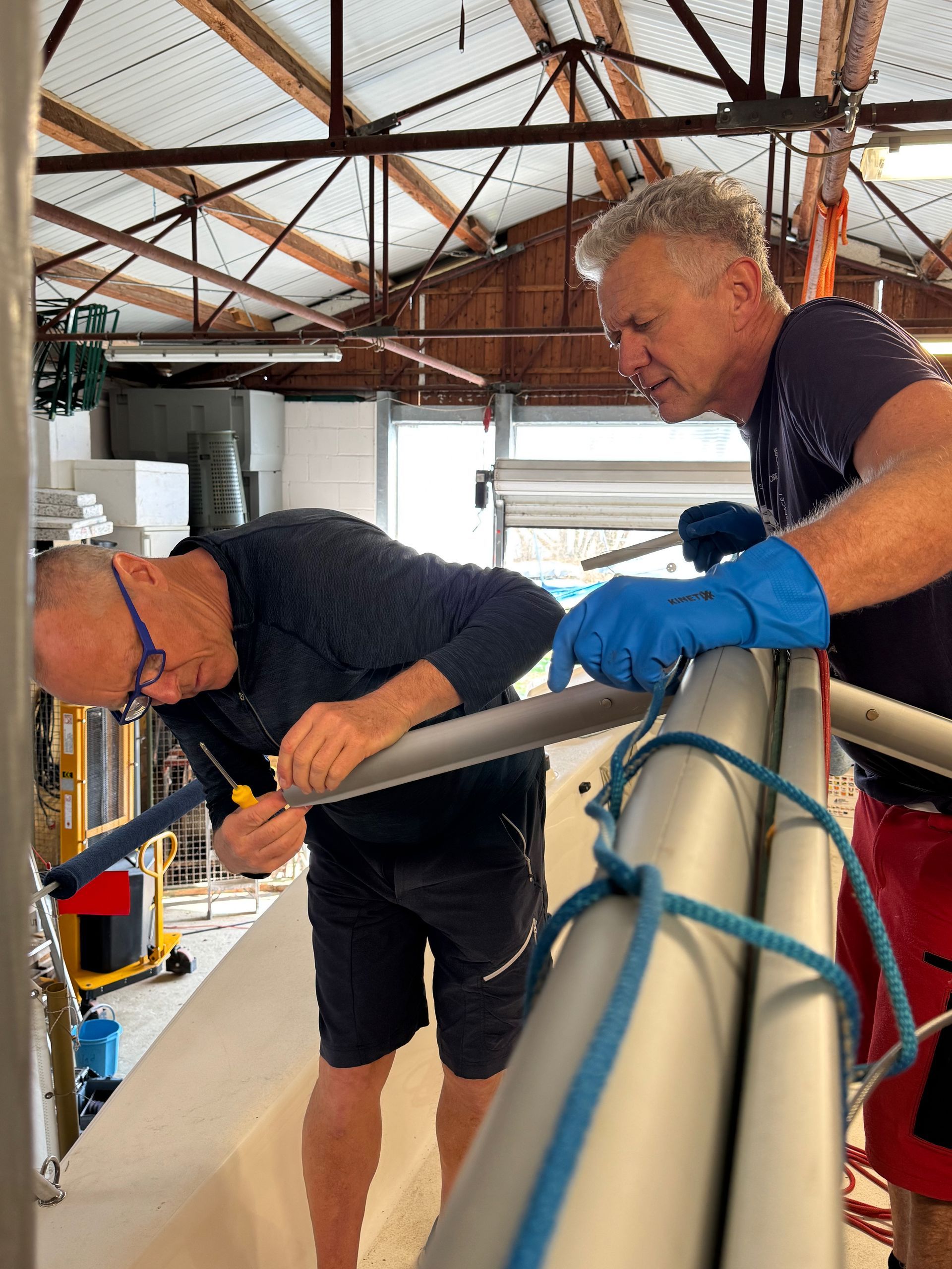 Sonntag, 08. März 2026, blauer Himmel, strahlender Sonnenschein und viele helfende Hände, die gemeinsam unsere J80 (Segelboot) auf dem Clubgelände des SC Wiesbaden 1911 e.V. in Schierstein ausgewintert haben. Auf dem Programm standen Waschen, Trocknen, (Föhnen ;-) ), Teile tauschen und Polieren. Und getreu dem Motto „Viele Hände, schnelles Ende“ sind wir mit den noch offenen Aufgaben bei Zeiten fertig geworden, sodass das Boot noch im März zu Wasser gelassen werden kann. Genauer Termin steht noch aus. Details folgen.