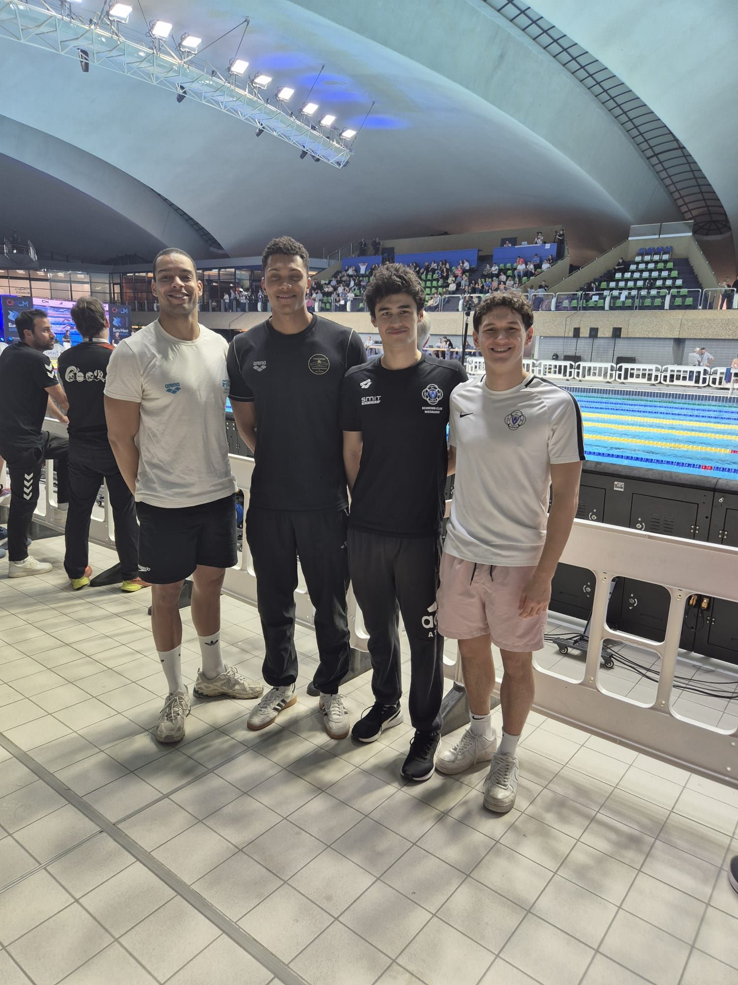 Wir trafen Tessa Giele und Sean Niewold wieder, die ja zu unserem DMS Team gehören, aber diesmal für ihren Holländischen Verein antraten. Unser "Special Guest" war Melvin Imoudlu, der als einziger Schwimmer aus Potsdam angereist war und von Grossi mit betreut wurde. Kingue und Melvin waren hier für unser Team die großen Vorbilder für unser Team.