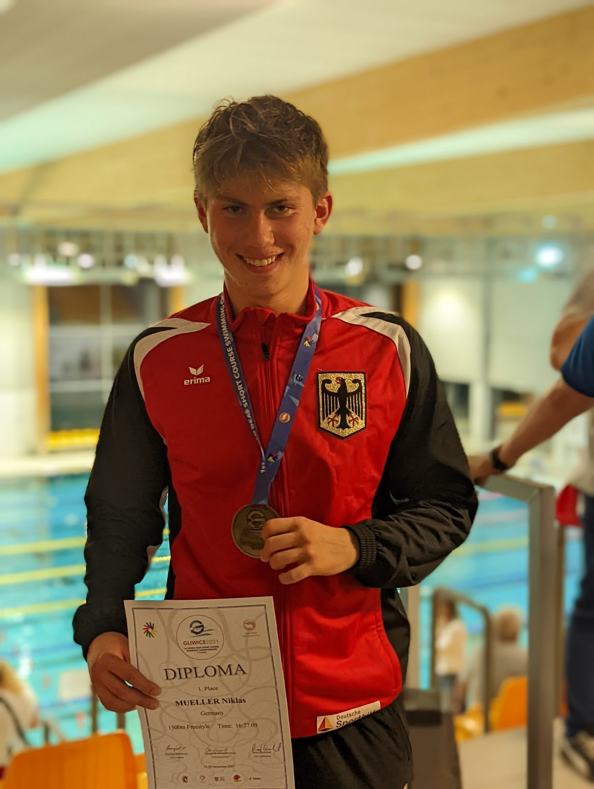Niklas Müller ist ein ehemaliger, sehr erfolgreicher Para-Sportler aus unserem Verein; bei den Gehörlosen ist er Alterklassen-Rekorde geschwommen, war Deutscher- sowie Weltmeister und hat bei den Deaflympics doppelt Bronze gewonnen. Er beendete 2024 sein Karriere als aktiver Sportler und ging zum Studieren nach Tübingen, um Tiermedizin zu studieren.